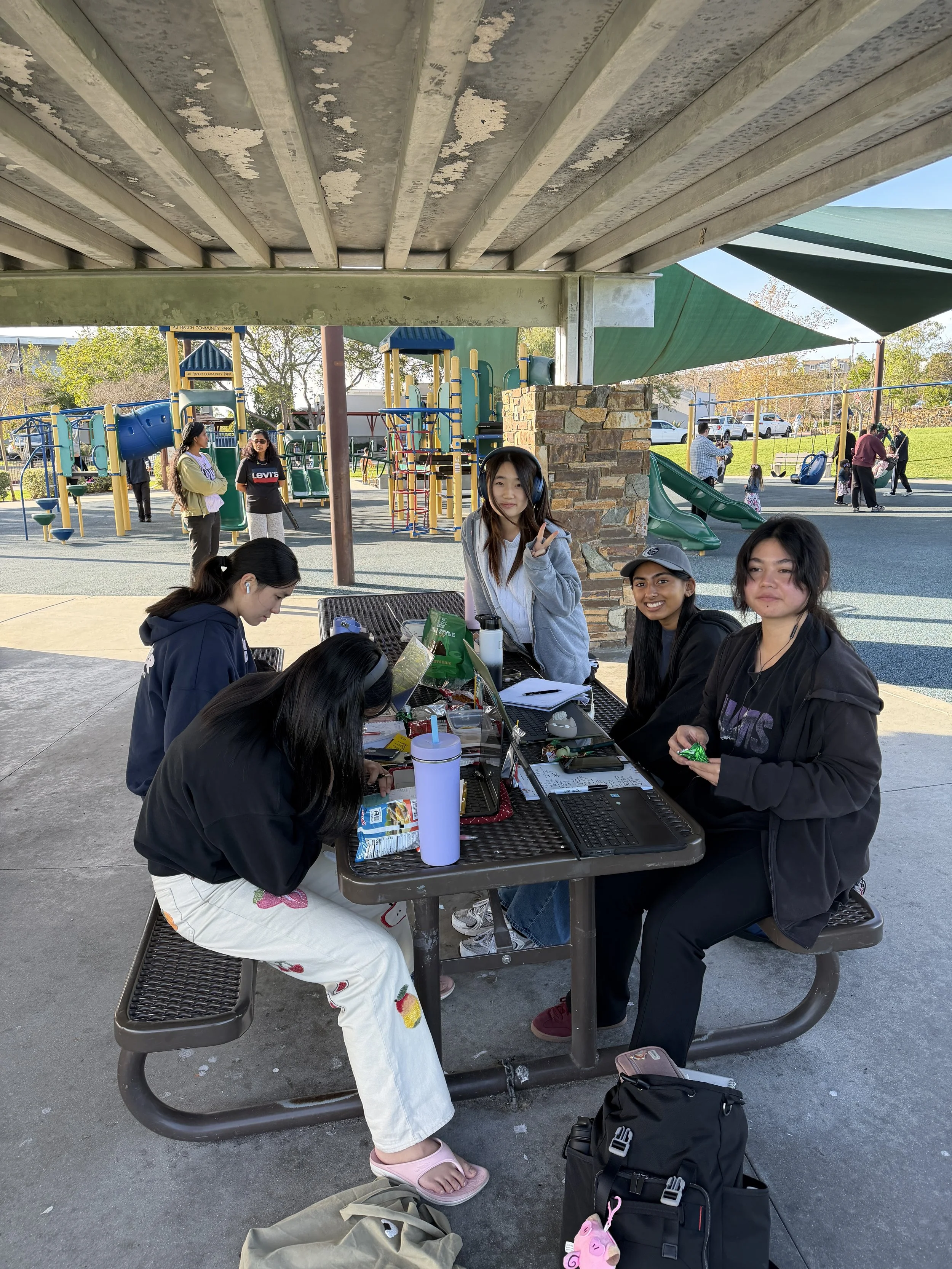 The WiFi Focus Park project addressed a challenge many students face: balancing schoolwork with spending time outdoors. Students created a study session in a local park where participants could complete homework while enjoying nature. Equipped with snacks, tutoring support, and a mobile hotspot to ensure accessible WiFi, the event created a productive and welcoming outdoor learning space. Surveys from attendees showed that students felt more productive studying in nature and successfully completed their work during the session.