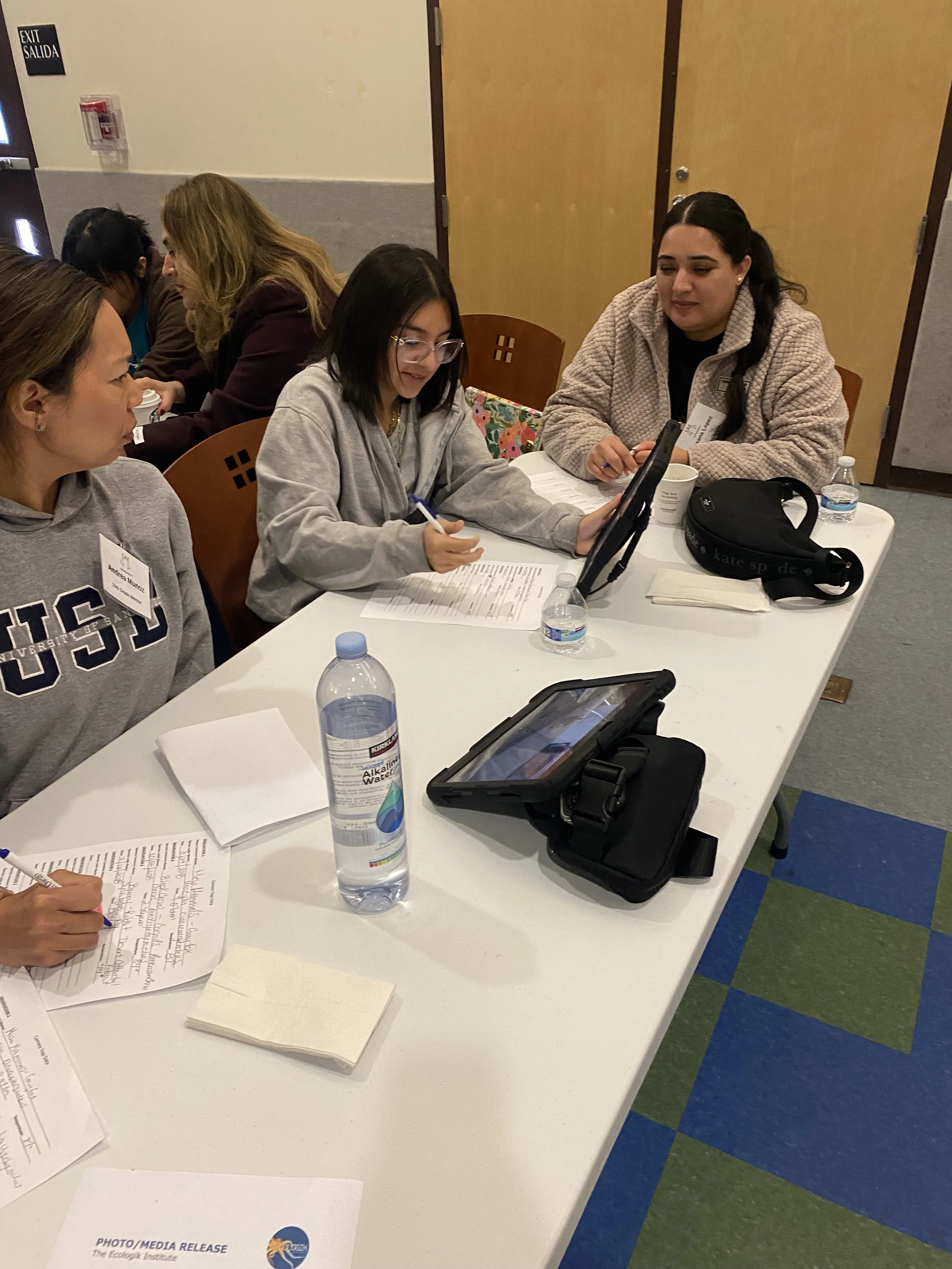 Youth from Mana De San Diego work with their mentors filling out datasheets and using iPads for the science activity.
