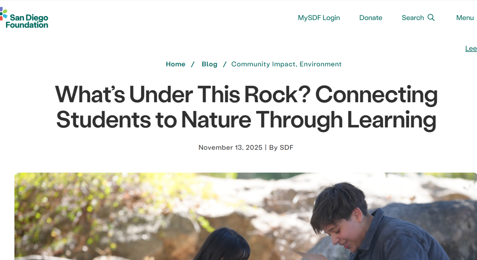 What’s Under This Rock? Connecting Students to Nature Through Learning (San Diego Foundation)