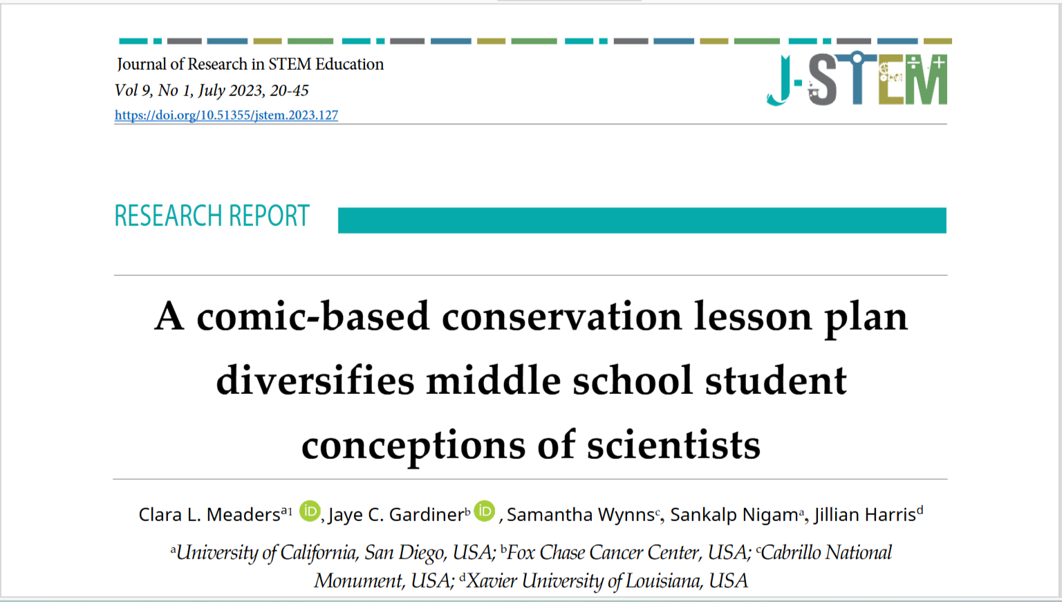 A comic-based conservation lesson plan diversifies middle school student conceptions of scientists (Journal of Research in STEM Education)